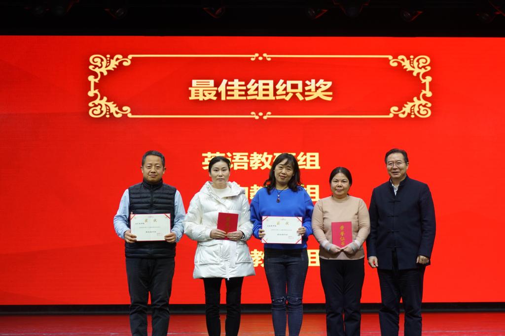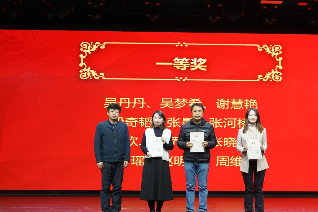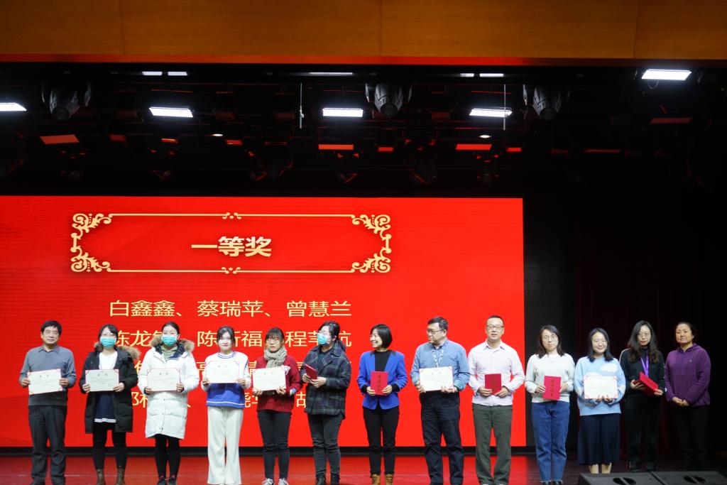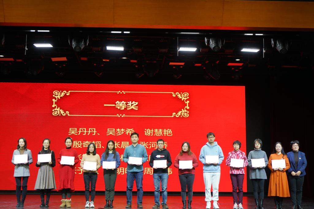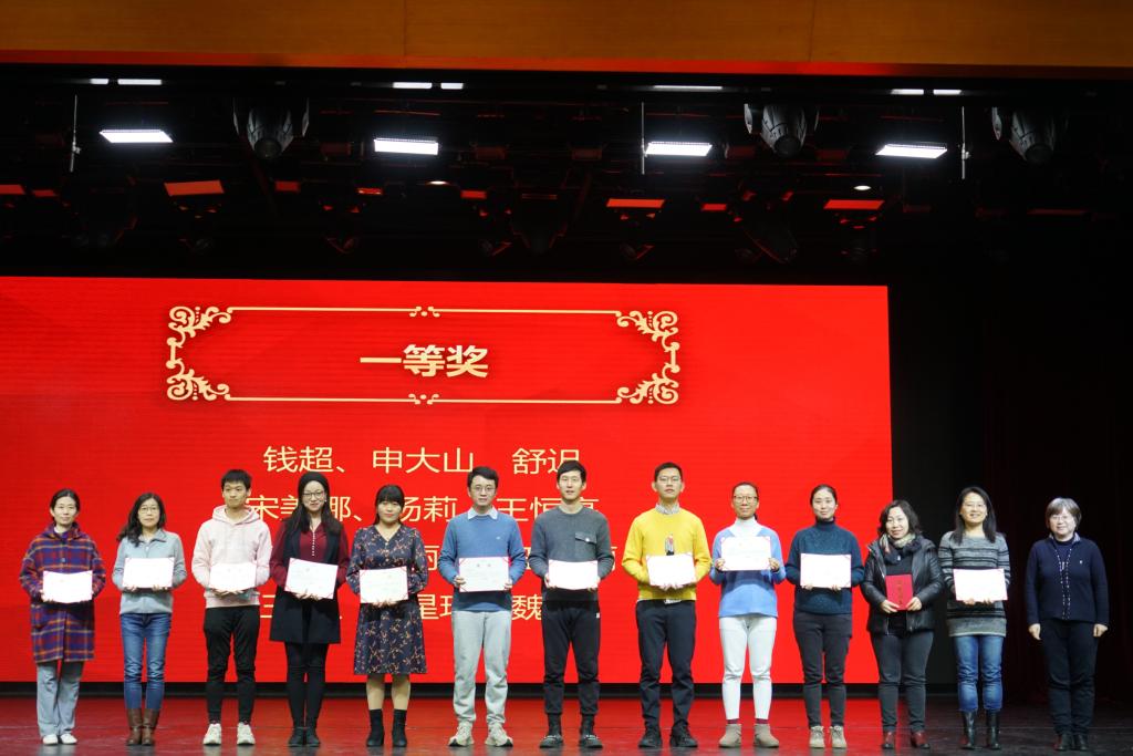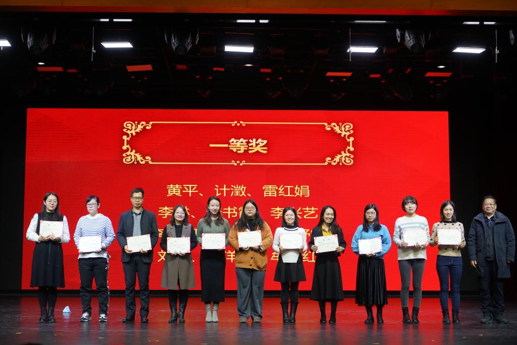之后,方妍书记宣读了本次论文年会获得最佳组织奖以及获得一、二等奖的部分教师名单。本届论文年会共收到论文314篇,经过外请专家的评审,最终评出4个优秀组织奖,一等奖61篇,二等奖223篇,三等奖30篇。校领导为获得最佳组织奖、论文一等奖的团体和个人颁发了证书并合影留念。
