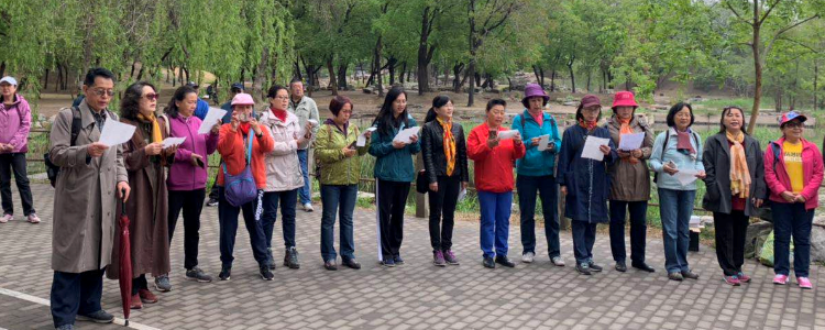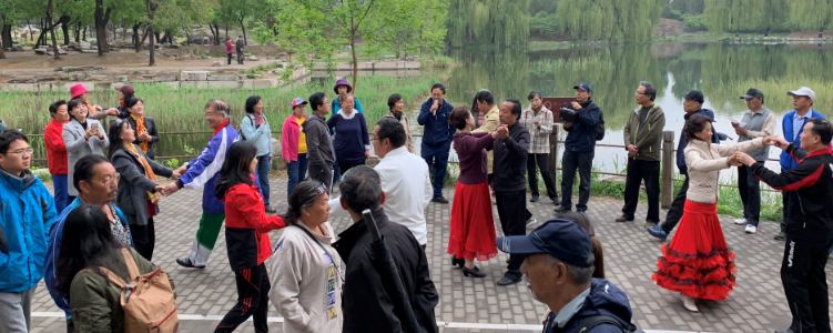上午9点,大家陆续来到圆明园东门集合。本次活动的路线为圆明园东门——天鹅湖——牡丹园——圆明园南门。校友们纷纷拍下沿途美景,记录下与大家一起运动的快乐。天鹅湖广场边,校友合唱团快闪歌唱《我爱你中国》、《我和我的祖国》、《共和国之恋》。