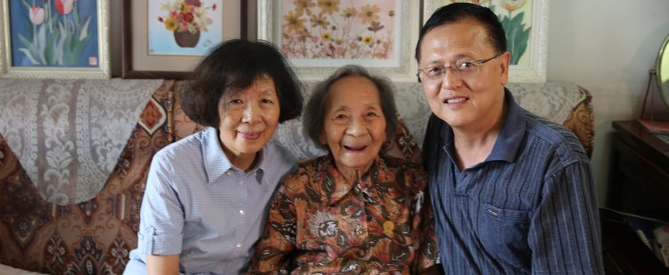图4 王英民与王默老师、她的女儿张颖(左)合影