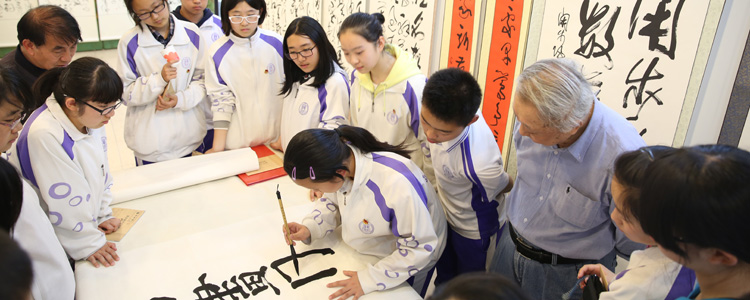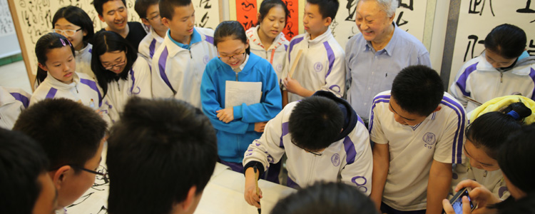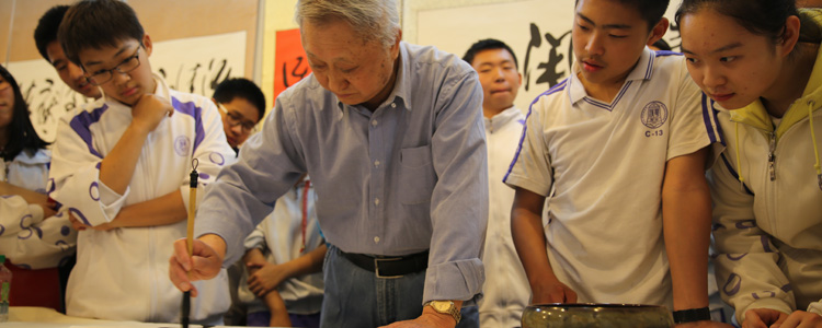 韩家鳌先生首先向同学们介绍了中国书法文化的深刻内涵,他说:“季羡林老先生曾经说过,在全世界范围内,能够把文字书写上升为艺术的,只有中国的汉字!中国汉字的结构与众不同,具有拼音文字所无法具有的表现方式。”