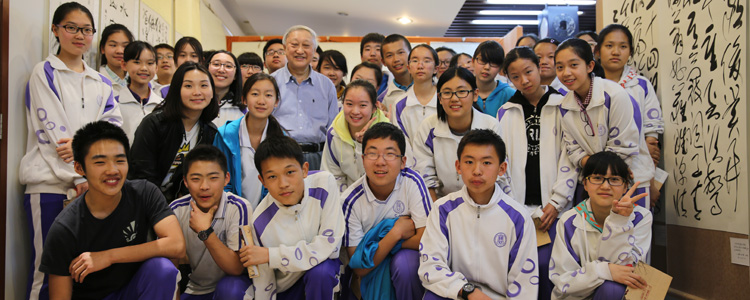 在整个交流活动过程中,欢声笑语不断,韩家鳌先生饱含深情,希望同学们能够学习了解中国博大精深的书法文化,从中收获处世为人的智慧。参观交流让同学们真正地有所悟,更有所得!最后,韩家鳌先生与同学们合影留恋。