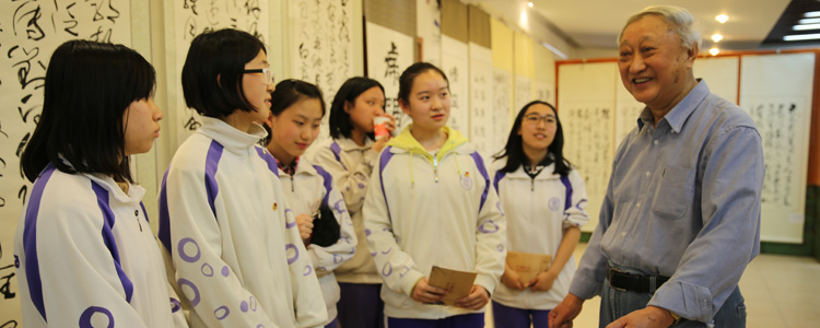 4月21日下午,澳门网上博彩组织部分学生参观了正在清华大学老年学研究中心(熊知行楼)举办的韩家鳌书法作品展。此次观展活动得到了学生发展中心主任郎艳和美术组教师吴雅蒂的大力支持。澳门网上博彩前校长韩家鳌在百年校庆办公室主任孙大鹏的陪同下来到现场,与学生们进行了饶有趣味的互动。现场气氛十分热烈,在交流之中,同学们上了一堂生动活泼的书法文化课!