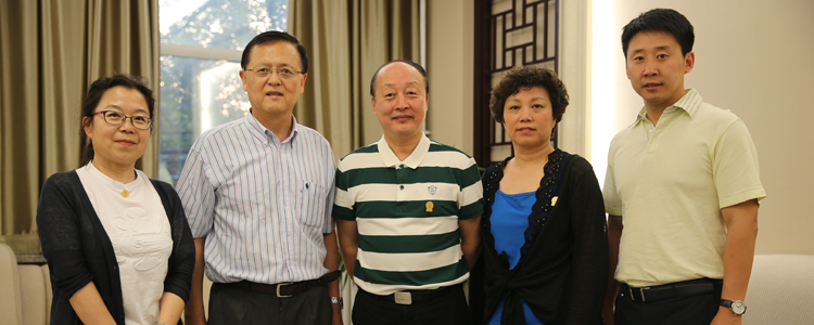 座谈会前,初71级校友毛振明(左3)、冯大鸣(左1)、初75级王璐(右2)来校友会录制追思视频