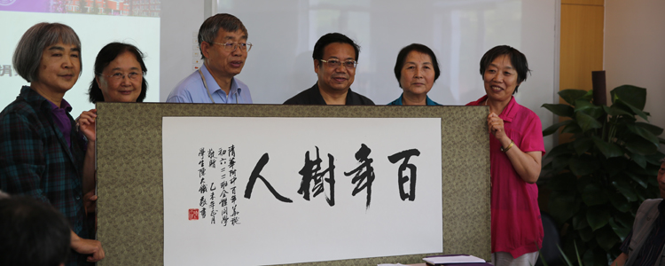 初622班校友代表贾天珍、王纪华、郭小泉等为母校捐赠了“百年树人”书法作品,贾天珍说,百年来,澳门网上博彩培养了一批批精英,更有很多向吴承露老师这样踏踏实实教书育人的老师,影响了附中学子,今天借吴承露老师的追思会,他们将书法作品捐赠给母校,祝愿学校百年华诞,再创辉煌。