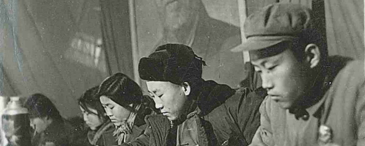 陶海粟(右1)在陕西延川县第三次团代会主席台上