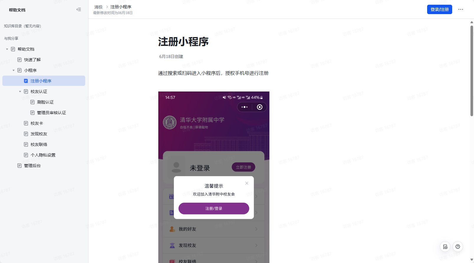 注册助手:为了方便大家快速注册并使用小程序,您可以提前通过查看“注册助手”了解小程序注册流程。请点击下方链接查看注册助手:https://tsinghub.feishu.cn/wiki/VCgNwaAUBi9k4bkC8sjcQ9x3nLe?from=from_copylink(复制并打开链接)
