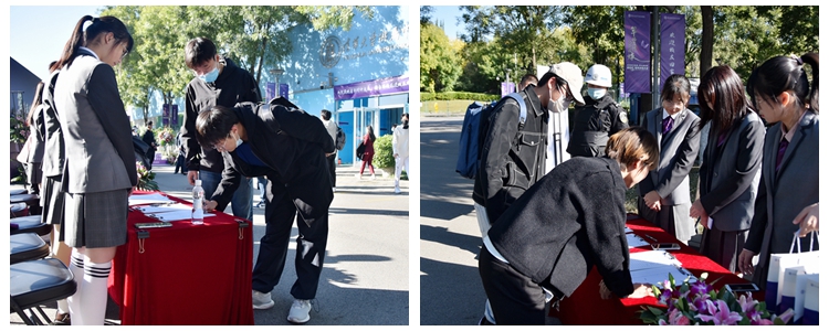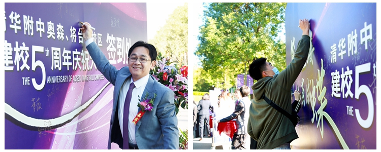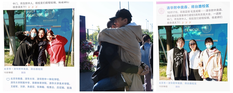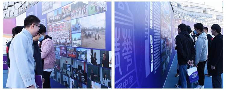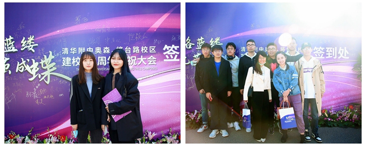 伴随着金秋早上的阳光,校友们回到熟悉的校园,或在签到处欣喜地领取纪念品;或在签名墙上留下珍贵的签名合影;或和昔日同窗在学校精心准备的庆祝展板前拥抱合影;或在校史展板前驻足回忆美好的高中生活......现场充满了欢乐的笑声。