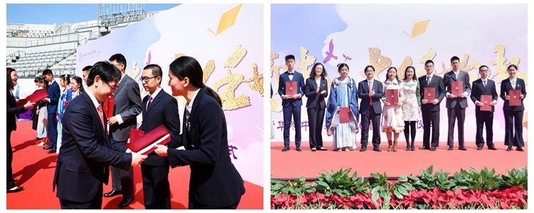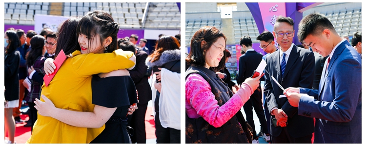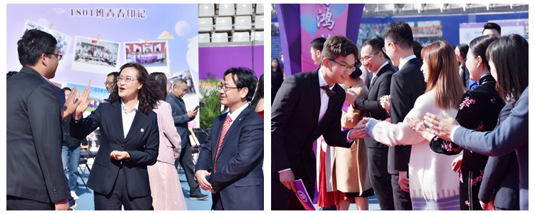 学生走过成人门,与领导和老师击掌