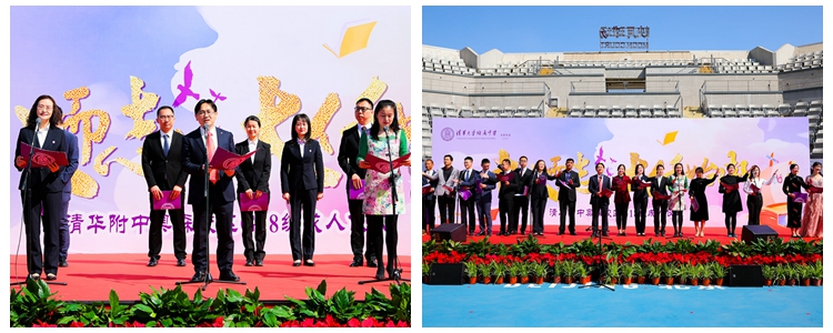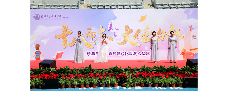 四位主持人宣布成人仪式正式开始后,国旗手入场,全体奏唱国歌。主持人带领同学们回忆十八年春秋,无数个熟悉的名字与场景在学生们脑海中滑过,掀起回忆的浪潮。