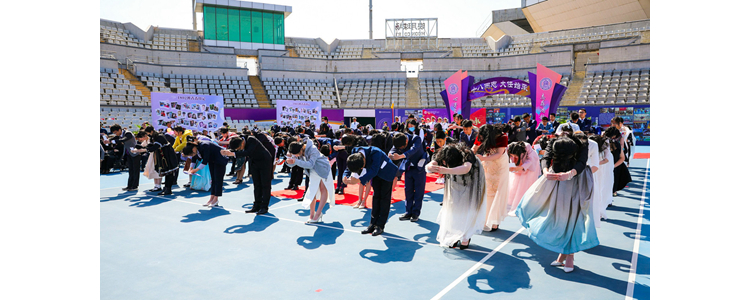 授业之恩,终生难忘。同学们在司仪的带领下深情地读谢师词,向台上含辛茹苦的老师深深鞠躬,行谢师礼。随后,由老师们鞠躬回礼。学生们在感受传统文化尊师礼节的同时,也深切表达了对老师的感恩。