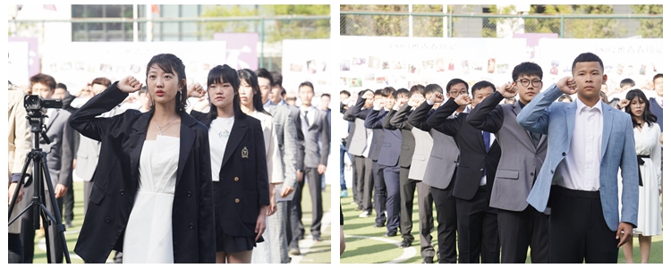 高三4班蒋美琳带领全体高三学生在国旗下庄严宣誓。朱建宏校长、张姝敏副校长、董薇副校长,为各班代表颁发成人证书,同学们的人生从此正式开启新的篇章。