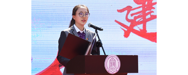 宣誓仪式结束后,高一2班陆溪琳代表新团员发言,为能够加入中国共产主义青年团而感到光荣与自豪,并立志传承五四精神,做好党的助手和后备军。