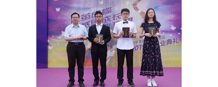 王殿军校长(左一)为各班学生代表颁发毕业证书