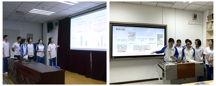 2019年6月28日、7月5日、7月8日,奥森、将台路校区研究性学习结题答辩会在两校区各班教室进行,两校区所有高一、高二师生680余人共同参与此次活动。此次答辩会按学科大类分组,每组配有8-10位答辩教师。小组指导教师进行现场观摩,最后综合平时表现与结题答辩成绩,按年级评选一、二、三等奖。