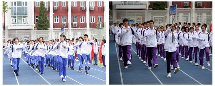开幕式入场式是展示师生精神风貌的第一站,在高亢的运动员进行曲中,国旗队和红旗队雄赳赳气昂昂地拉开序幕,随后各班运动员方阵迈着坚实有力的步伐、喊着整齐划一的口号,英姿飒爽,昂首阔步走过主席台。