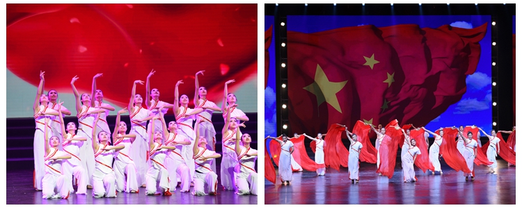 70年风雨兼程,70年春华秋实。当《共圆中国梦》旋律响起,奥森、将台路校区教工艺术团的老师以灵动的舞姿展现了两校区浓烈炽热的爱国情怀和努力奋斗的坚定信念,将整场活动推向高潮;朱建宏校长、王籽晴老师华丽亮相,领唱歌曲《在灿烂阳光下》,老师们用歌声表达对新中国成立以来所取得伟大成就的自豪和对祖国的赞美!