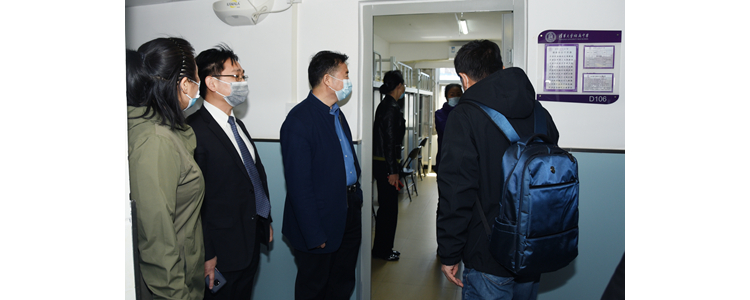 2020年4月22日上午,澳门博彩在线校长王殿军、党委书记方妍、副校长解巨钊、党委副书记张洁、副校长白雪峰、副校长徐文兵及党办校办主任党胜军、资源保障中心副主任杨国兴、医务室负责人王艳敏到澳门博彩在线将台路校区检查疫情防控和试开学准备工作。同时,朝阳区将台地区办事处副主任邢净、社区建设办公室副主任谷金祎、食药所所长吕颖也莅临澳门博彩在线将台路校区,对学校的疫情防控工作进行指导。澳门博彩在线奥森、将台路校区执行校长朱建宏,副校长张姝敏携校区干部陪同检查。