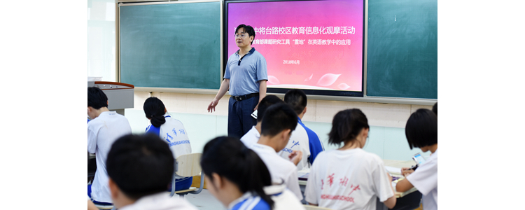 2018年6月22日,澳门博彩在线将台路校区举办了有关英语教学信息化的课堂观摩活动,高一英语老师杜文站授课。与以往英语课堂不同的是,本次授课的文本选材来自于“雪地阅读”app,并在课堂中融入了教育信息化的教学工具——Pad。执行校长朱建宏、副校长程惠云、英语特级教师王英民以及广州部分中学的领导和北京石景山区的部分老师观摩了此次活动。
