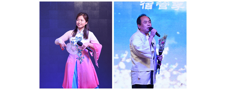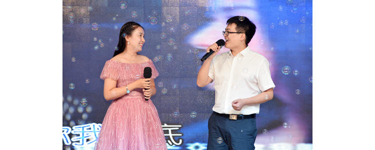 任美丽老师(左)、孟广言老师(右)主持歌唱比赛