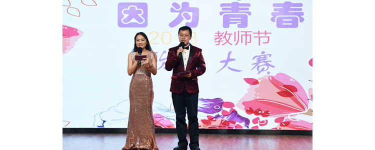 庆祝大会的下半场“因为青春”教职工歌唱比赛由任美丽和孟广言老师主持。执行校长朱建宏、副校长张姝敏、副校长程惠云、音乐组老师王籽晴、张毅、李墨及中国交响乐团演员周建飞担任评委。经过前期初赛的激烈角逐,两校区共有十组选手冲出重围,一展风采。