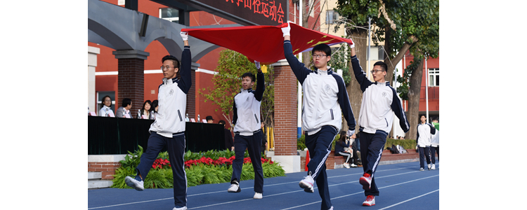 当运动员进行曲奏响时,由高三年级组成的国旗方阵、校旗方阵,带领着高一年级5班和6班组建的红旗方队,校啦啦操队组成的花束方队,昂首阔步走过主席台。随后,各班迈着坚实有力的步伐,气宇轩昂,蓄势待发,意气风发,充满了青春的活力,彰显出了青年人的活力、激情与智慧。随后,师生们进行了庄严的升旗仪式。
