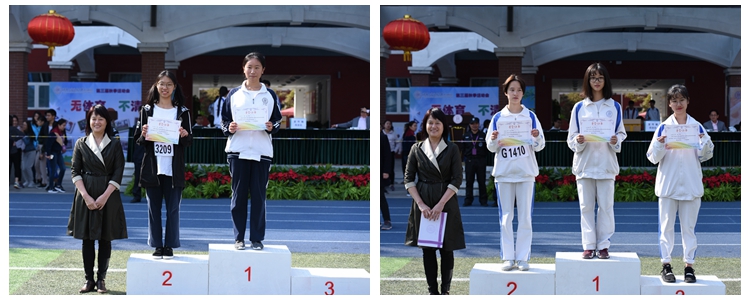 上午10:30,程惠云副校长为获得女子1500米比赛名次的运动员进行了颁奖。