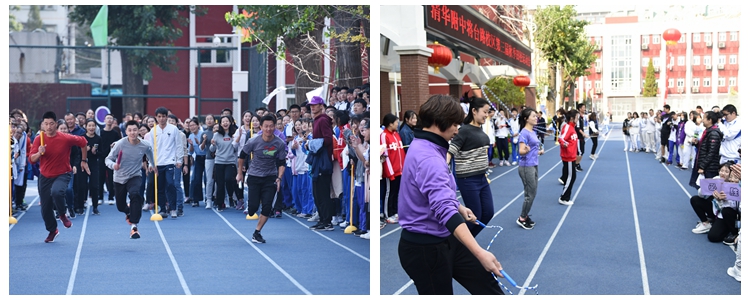 中午11:00举行了教职工迎面接力和跳绳比赛。赛场上,学生们争相为教师加油, “加油”声激励人心。老师们也以实际行动传递清华体育精神,激发了学生们的热情,师生其乐融融。