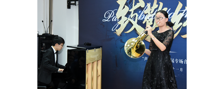 高1701班张雨涵同学(右) 圆号独奏《浪漫曲》、高1702班范沐涵同学(左)钢琴伴奏