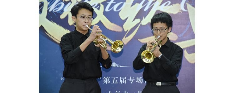 高1803班韩万辎同学(左)与高1802班李祎文同学(右)小号二重奏《莫扎特的旋律》