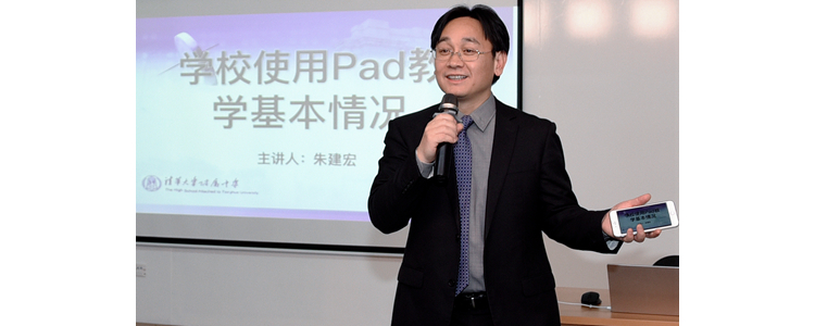 朱建宏校长从信息化教学背景,信息化教学的原因、方式,师生们对“PAD进课堂”的反馈以及未来信息化教学的设想和计划五个方面,对学校使用PAD教学的基本情况和使用前景进行了概述。沈阳56中学校长郭军介绍了他们独具特色的信息化教学、智慧化宿舍以及智慧化餐厅。陈亮主任介绍了北大附中云课程介绍与实施情况。