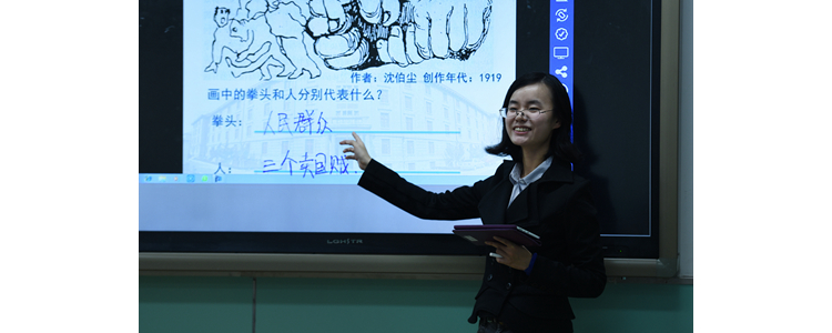 郭家玮老师(历史)对学生课堂作业进行展示批改