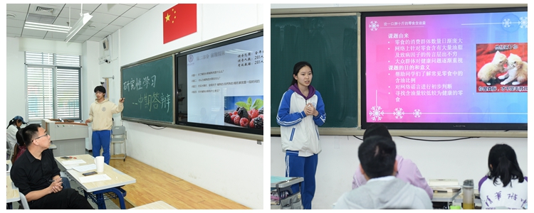 根据学科相近性、每组人数及组数的情况,将所有选题分组。学生们凭着对研学课题的兴趣,在指导教师的带领下,经过近半年的探究,已经进入到项目实施这个重要阶段。各个小组的汇报大致分为以下三个部分,首先是前期对相关文献阅读情况的总结,而后陈述目前阶段取得的成果和存在的问题,最后汇报下一步的研究计划。