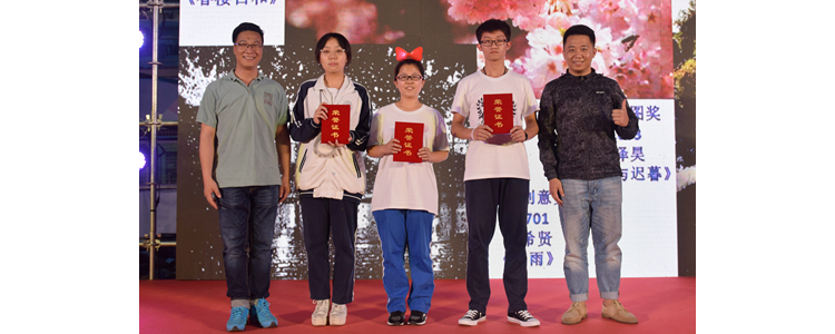 陈国良老师(左1)为最佳男主角(代领)、最佳女主角颁奖