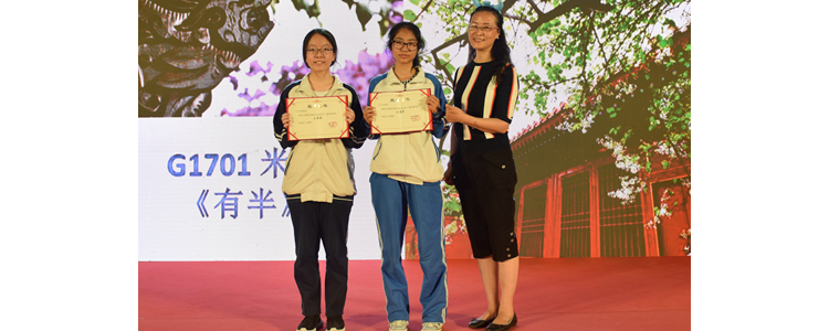 蔡迎青老师(中)为最佳男配角(代领)、最佳女配角颁奖