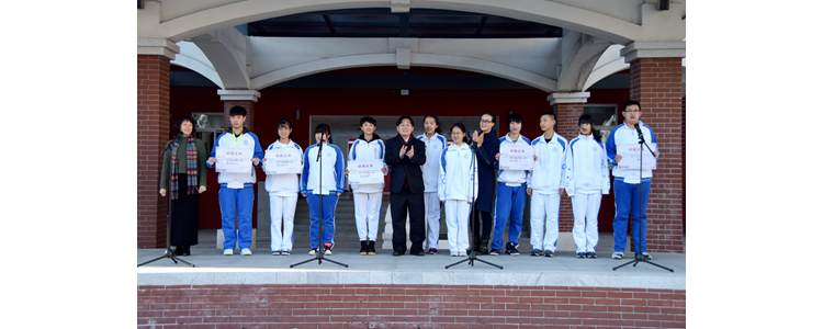 校领导为高一年级获奖班级颁奖