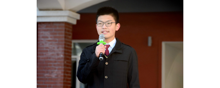 高一(2)班付朋在英语口语风采大赛中,凭借流利的口语和慷慨激昂的演讲,荣获本次英语演讲比赛的第一名;并且现场向全体师生展示了他的青春风采。