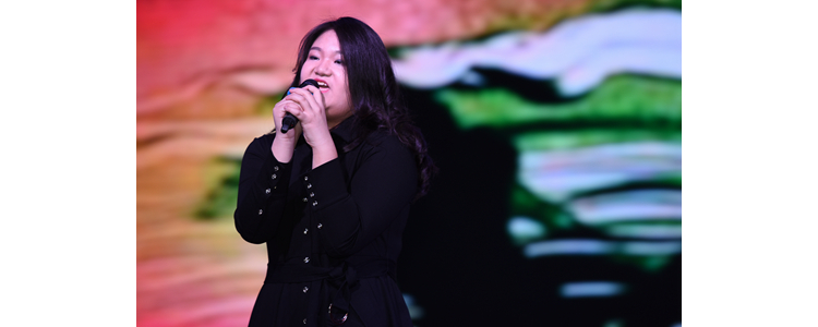 将台路校区的公雨菲同学带来英文独唱歌曲《Sorry》,全场的观众跟着她的舞动一同哼唱。