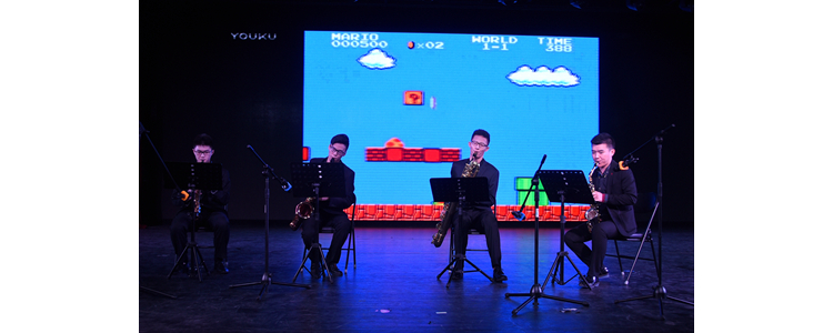 由奥森校区霍杰、滕伟、赵志浩、张新雨带来的萨克斯四重奏《Super Toons》,让观众陶醉在萨克斯独特的音色之中。