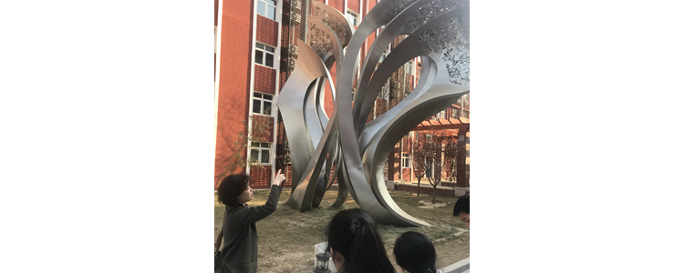 朱建宏校长与张舒女士共同讲解景观《晨》的含义