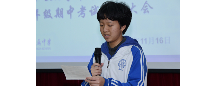 大会表彰了期中考试总分优秀学生和单科成绩特优学生,伍玉旻、王国郦等同学分别作为期中考试中的优秀代表上台领奖。大会还邀请了高1701班的伍玉旻同学和刘洋同学分别作为年级总分第一和数学单科第一的优秀代表为全体同学作学习经验的介绍和分享。两位同学从自身的学习经验出发,生动地阐明了好的学习方法对于成绩提升的重要作用。