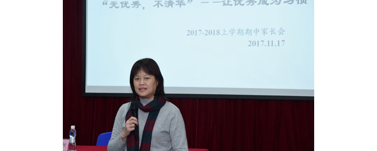 首先,朱洪秋教授为家长做了“鼓励的力量”主题报告,通过实际案例深度分析高中生常见问题及解决方法,强调孩子需要在鼓励中成长,并与家长互动交流意见。教育是滋润心灵的事业,对于孩子的成长,需为培养而鼓励,为避免而引导。程惠云副校长也分享了教学中通过学习软件鼓励学生提高英语成绩的成功教学案例。