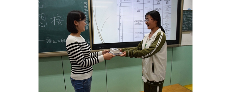 李怡宏学姐来到高三(2)班和所有学生进行了经验交流。学姐介绍了关于专业选择等一系列高三同学迷惑的问题。然后从从学习、作息、习惯三个问题讲述了高三生活。同学积极响应,纷纷提出心中沉寂已久的疑问,并在与学姐的探讨中得到了解答。在活动即将结束之际,同学们向学姐送上了自己精心准备的礼物表达对学长感激。