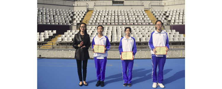 张姝敏副校长(左1)为一等奖的学生颁奖