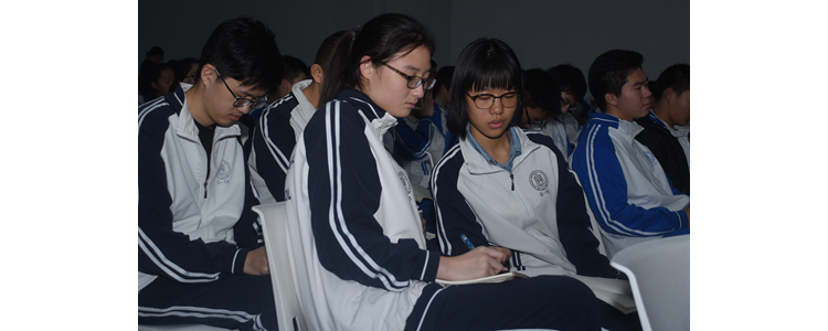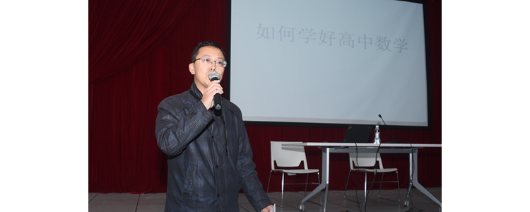 讲座活动由奥森校区数学学科组长孟广言老师主持,首先跟同学们简要分析了学习高中数学遇到的困惑,然后向同学们介绍本次讲座的张鹤老师-----北京市特级教师、苏步青数学教育奖的获得者、中国教育学会中学数学教学专业委员会理事会理事。