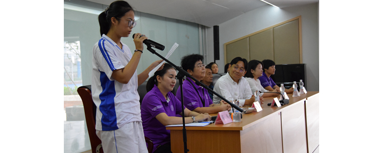 初三2班帅子涵的母亲代表家长发言,倡导家长要支持学校、理解老师,学习和孩子交往,期望每一位家长“可以微笑着和孩子交流,享受与孩子一起成长的日子了。”