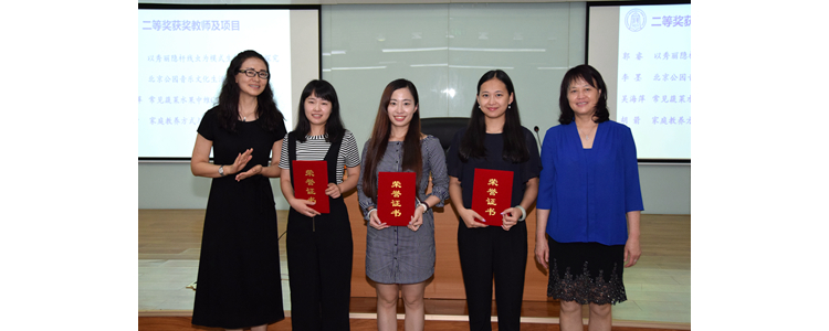 张姝敏副校长(左1)、程惠云副校长(右1)为二等奖获奖教师颁奖