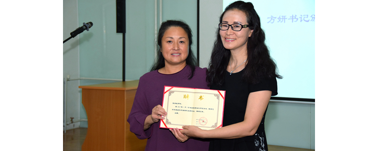 方妍书记(左)为张姝敏副校长(右)颁发聘书