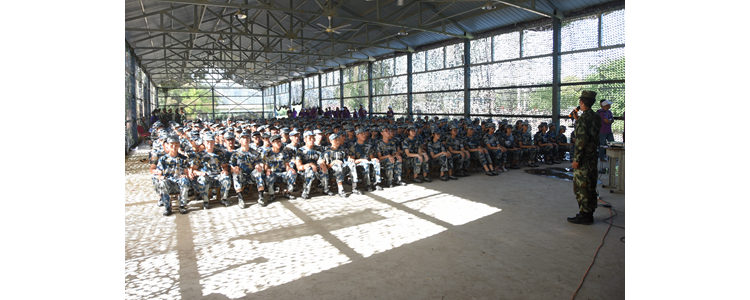 经过短暂的午休,学生们身着迷彩服在操场集合。教官们首先向学生申明了军训种种规章制度,随后教官们带领学生进行了稍息、立正等基本训练。艳阳之下,学生们的军训服都浸润了汗水,但依旧笔挺地站着。“教官好”、“老师好”口号嘹亮。下午4点,澳门博彩在线副校长白雪峰为学生们进行了一场《如何成为澳门博彩在线人》的精彩演讲,为学生们的习惯养成,人生定位,指明了清晰的航向。傍晚,教官们带领学生在树荫处拉歌、谈心、整编宿舍,总结一天的收获。