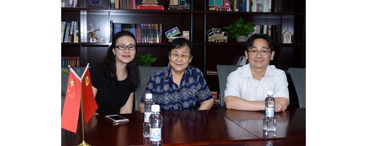 朱建宏校长(右1)、张姝敏副校长(左1)与尹冬冬教授(中)合影