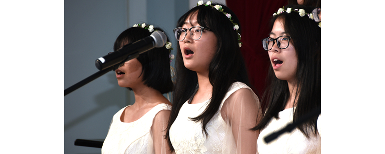 高一(2)班演唱了歌曲《四季的问候》和《Proud of You》,令全场沉浸在四季的情景和优美的英文旋律中。
